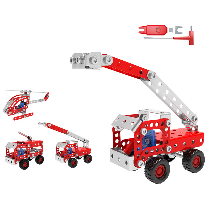 Οι κατασκευές είναι ένα δημιουργικό παιχνίδι που ενισχύουν τη λεπτή κινητικότητα του παιδιού καθώς και την ικανότητα να ακολουθήσει βήμα προς βήμα τις οδηγίες με σκοπό να δει το αγαπημένο του αεροπλάνο ή όχημα να ζωντανεύει μέσα από τα δικά του χέρια. Η χαρά της δημιουργίας είναι το καλύτερο προνόμιο των κατασκευών. Η συσκευασία περιλαμβάνει 120 τεμάχια και οδηγίες για τη κατασκευή 4 διαφορετικών μεταλλικών πυροσβεστικών οχημάτων.