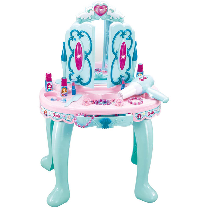 Ελάτε να ετοιμαστούμε και να περιποιηθούμε τον εαυτό μας με τον ολοκληρωμένο πάγκο ομορφιάς μας με 13 αξεσουαρ. Διαθέτει φώτα, ήχους και σεσουάρ για να νιώσεις μια σωστή πριγκίπισσα φορώντας τα αξεσουάρ που περιλαμβάνονται. Λειτουργεί με μπαταρίες που δε περιλαμβάνονται.