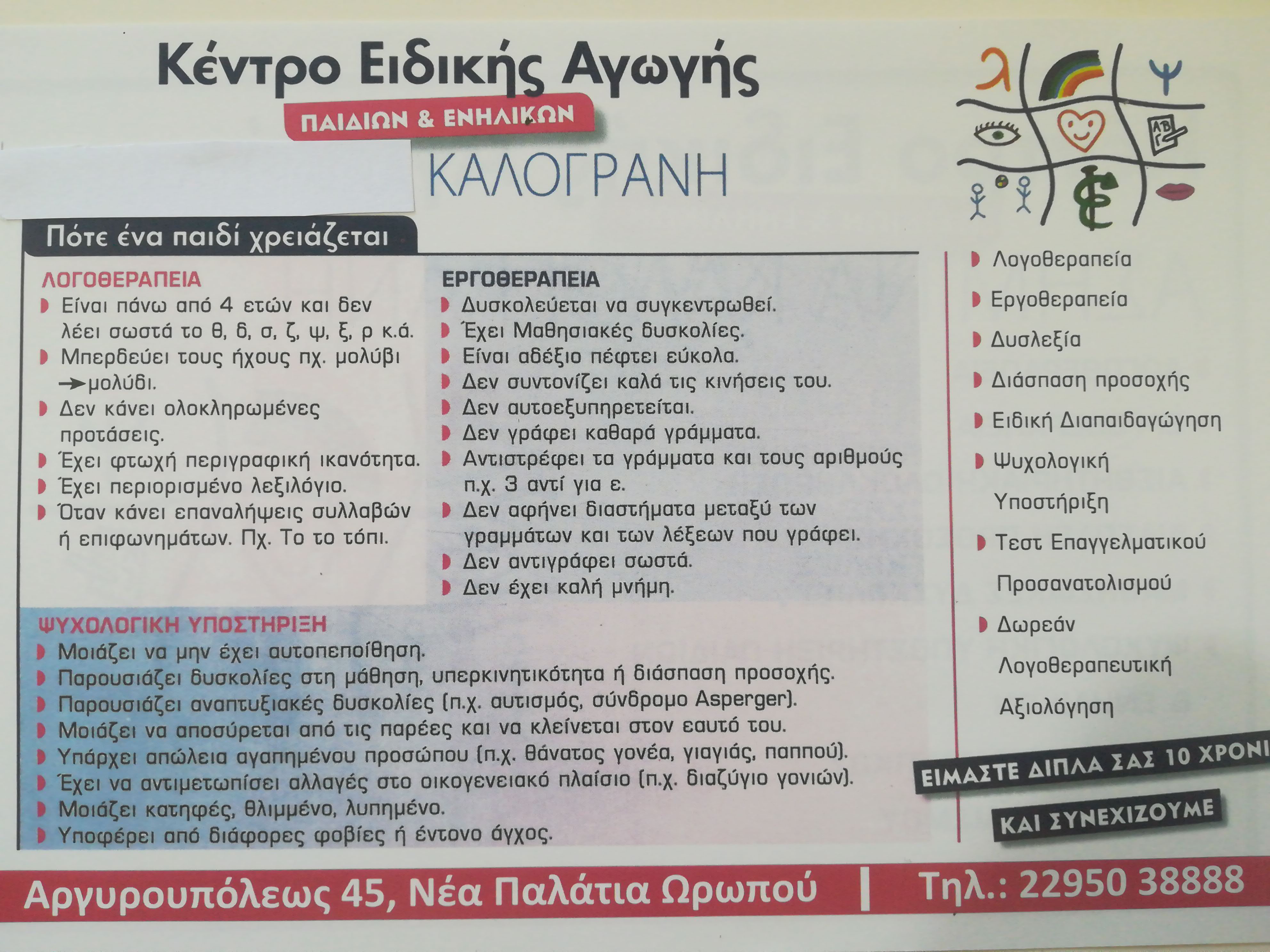 Κέντρο Ειδικής Αγωγής ''Καλογράνη'' Κέντρα ειδικών θεραπειών
